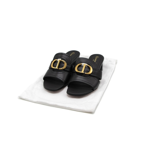 Christian Dior 30 Montaigne Heeled Slide Black Calfskin Size 37 1/2