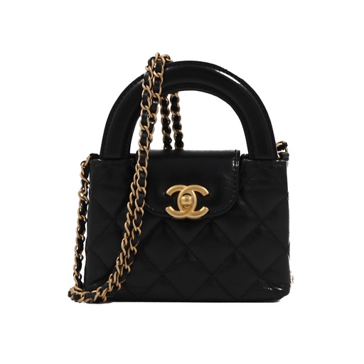 Chanel Shiny Aged Calfskin Quilted Nano Kelly Shopper Bag Black