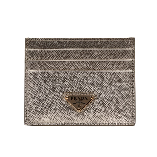 Prada Cardholder Gold Grained Leather With a Silver-Tone Logo Plaque