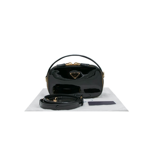 Prada Symbole Medium Embroidered Fabric Bag Black