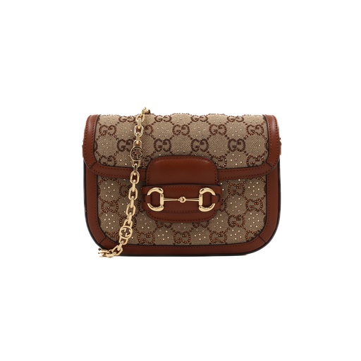 Gucci Horsebit 1955 Crystal Embellished GG Canvas Mini Shoulder Bag 675801