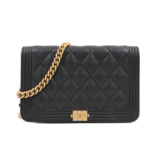 Chanel Black Quilted Caviar Leather Boy Wallet On Chain